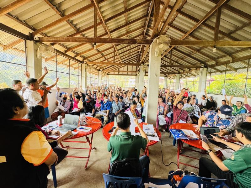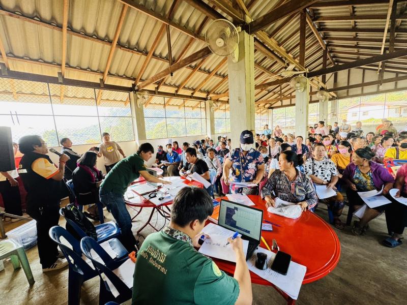 นายจิระศักดิ์ กมลจิตร รองปลัดองค์การบริหารส่วนตำบลฯ ลงพื้นที่ประชาคม เรื่องขอใช้พื้นที่สาธารณะบ้านผาเดื่อเป็นพื้นที่กำจัดขยะ