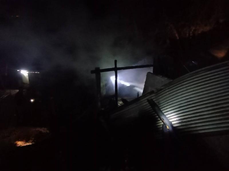 งานป้องกันฯ นำรถบรรทุกน้ำไปช่วยระงับเหตุ ไฟไหม้โรงครัว บ้านมะหินกอง