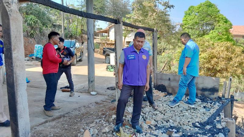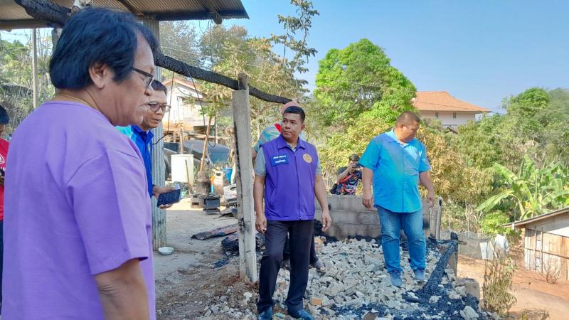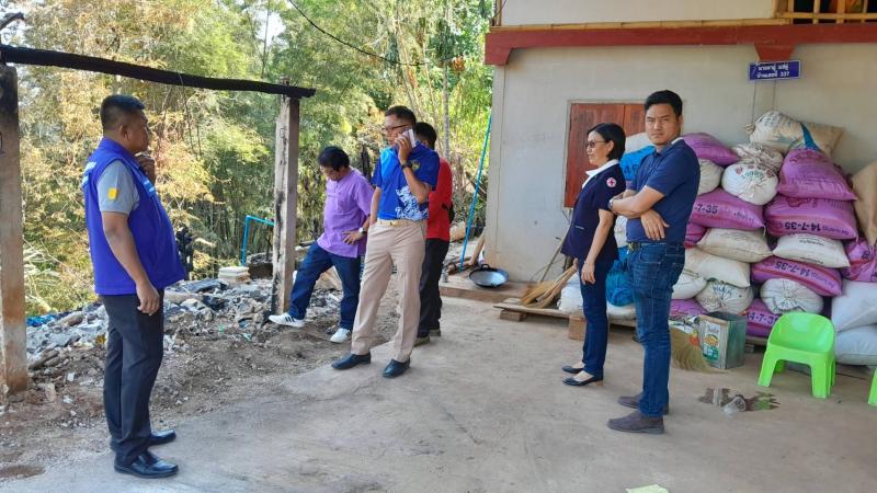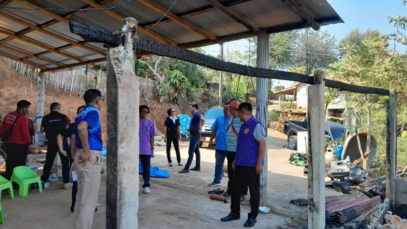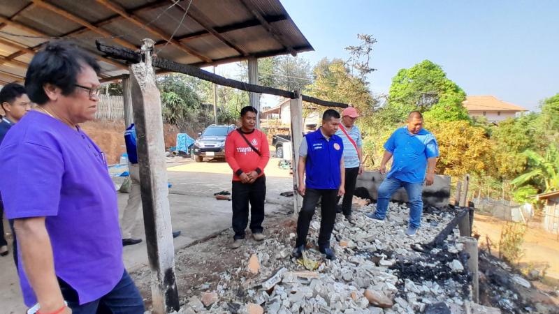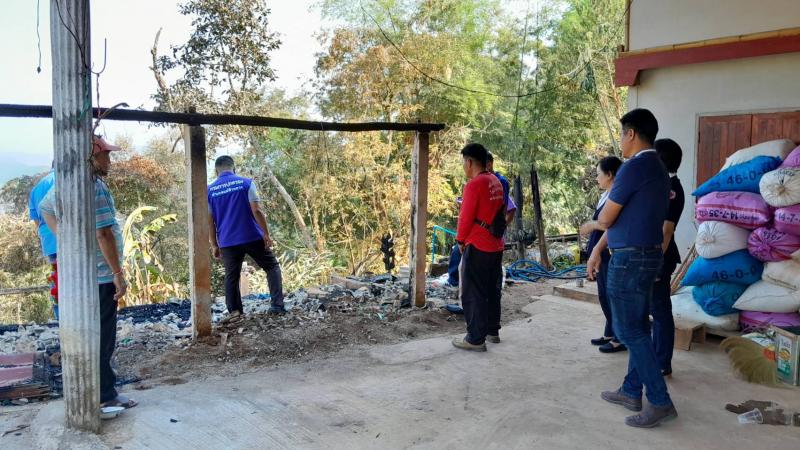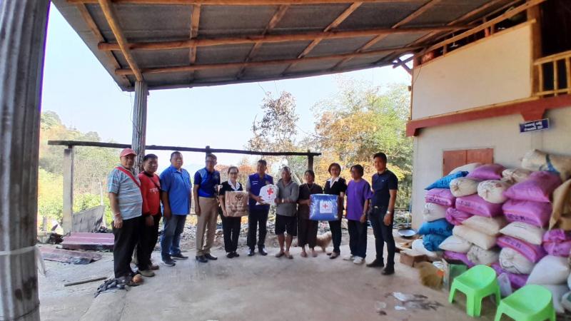 นายอภิชาติ ศรีสุวรรณ์ นายอำเภอแม่ฟ้าหลวง พร้อมด้วยกิ่งกาชาดอำเภอแม่ฟ้าหลวง และกำนันตำบลแม่สลองใน มอบของช่วยเหลือให้กับนายอาถู่ แซ่ดู่ กรณีไฟไหม้โรงครัว