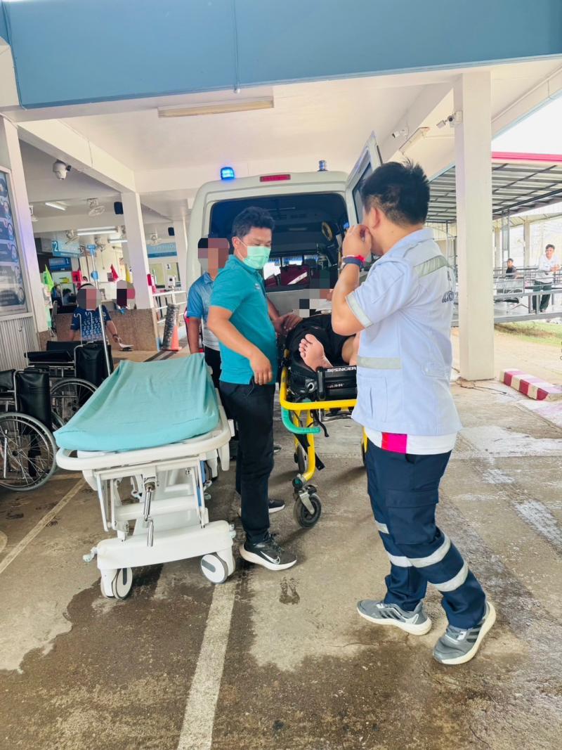 งานกู้ชีพ รับแจ้งจาก 1669 ให้ออกช่วยเหลือผู้ป่วยเกิดอุบัติเหตุลื่นล้ม มีอาการขาพลิก บ้านพะน้อย