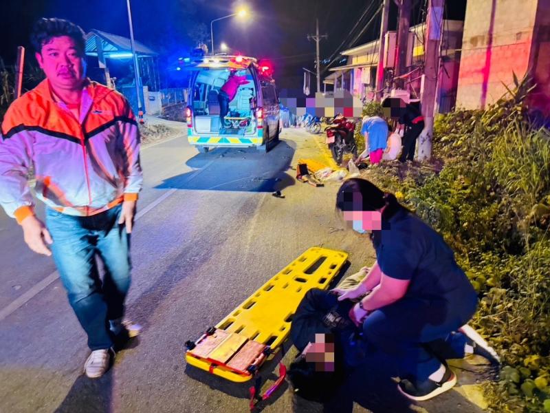 งานกู้ชีพ ออกช่วยเหลือผู้ป่วยประสบอุบัติเหตุ รถจักรยานยนต์ล้ม ที่บ้านหินคำ (หมู่ที่ 27)