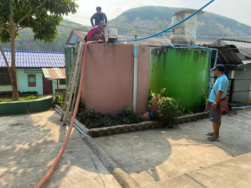 งานป้องกันฯ ออกบริการส่งน้ำอุปโภค ให้กับชาวบ้านห้วยผึ้งและโรงเรียนบ้านเทอดไทย (ประถมศึกษา)