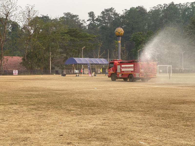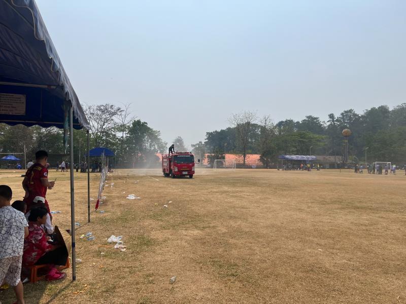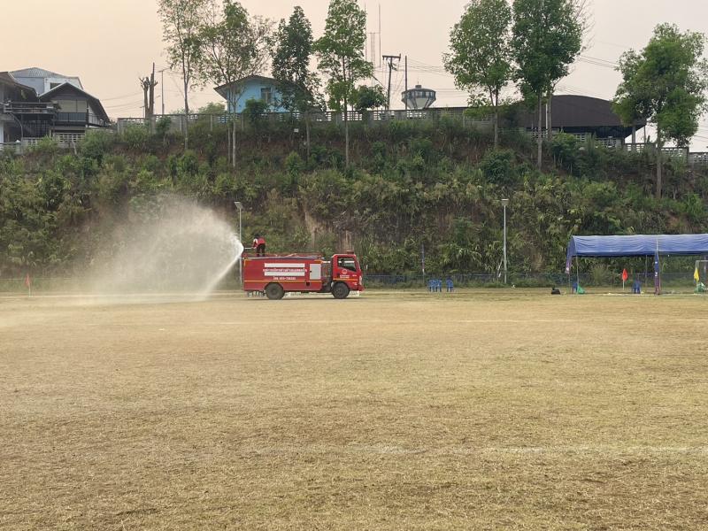 งานป้องกันฯ ออกปฏิบัติหน้าที่ รดน้ำที่สนามกีฬากลาง ตำบลแม่สลองใน เพื่ออำนวยความสะดวกให้กับนักกีฬาที่จะทำการแข่งขันกีฬา 329 และลดฝุ่น pm 2.5 และหมอกควัน