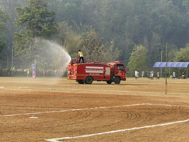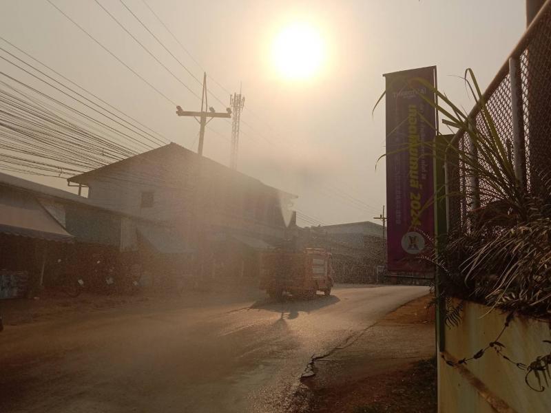 งานป้องกันฯ ดำเนินการพ่นละอองน้ำในอากาศ ปริมาณ 4,500 ลิตร เพื่อเพิ่มความชื้นในอากาศและลดฝุ่นละอองขนาดเล็ก PM 2.5 ในพื้นที่