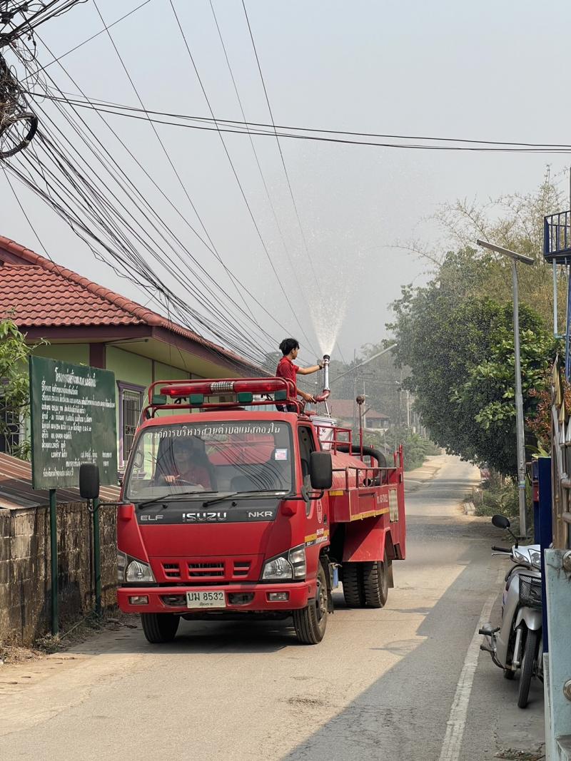 วันที่ 3 เมษายน 2567 เวลา 09:00 น. งานป้องกันและบรรเทาสาธารณภัย อบต.แม่สลองใน ดำเนินการพ่นละอองน้ำในอากาศ ปริมาณ 4,500 ลิตร เพื่อเพิ่มความชื้นในอากาศและลดฝุ่นละอองขนาดเล็ก PM 2.5 ในพื้นที่