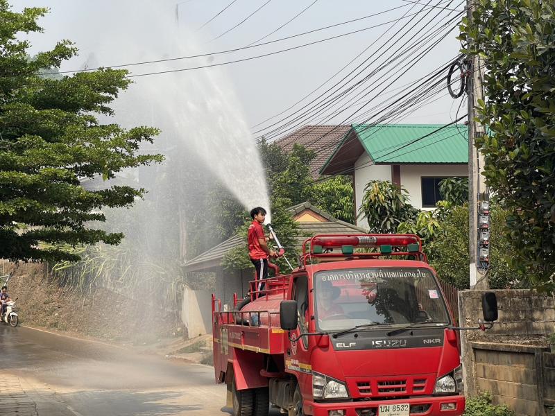 งานป้องกันฯ ดำเนินการพ่นละอองน้ำในอากาศ ปริมาณ 4,500 ลิตร เพื่อเพิ่มความชื้นในอากาศและลดฝุ่นละอองขนาดเล็ก PM 2.5 ในพื้นที่