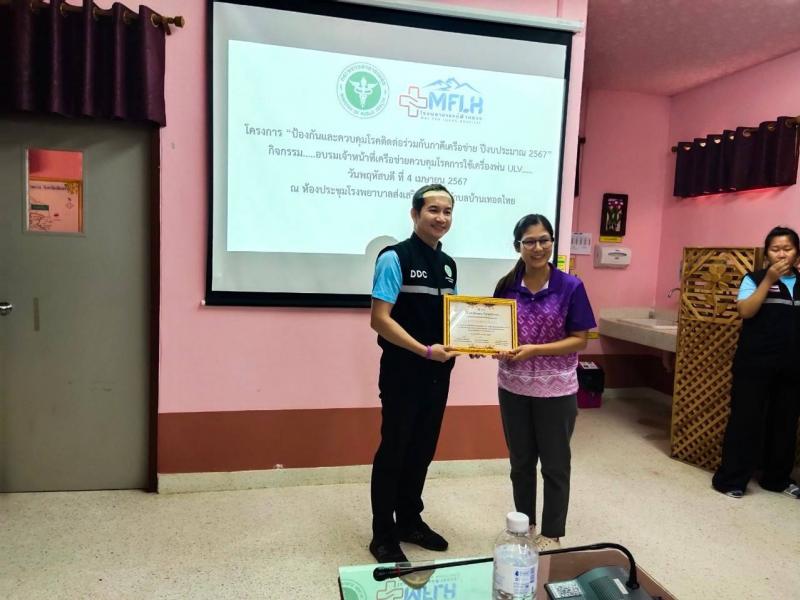 ฝ่ายบริหารงานสาธารณสุข เข้าร่วมโครงการป้องกันและควบคุมโรคติดต่อร่วมกับภาคีเครือข่ายบริการสุขภาพอำเภอแม่ฟ้าหลวง ณ รพ.สต.เทอดไทย กิจกรรมอบรมเจ้าหน้าที่เครือข่ายควบคุมโรค การใช้เครื่องพ่น ULV