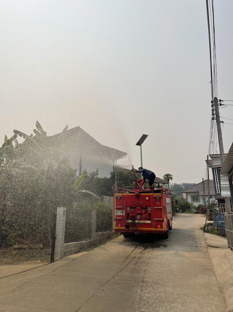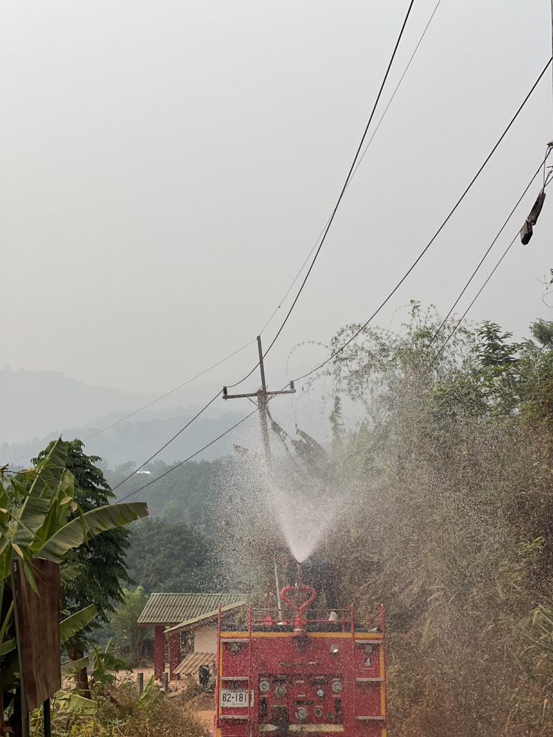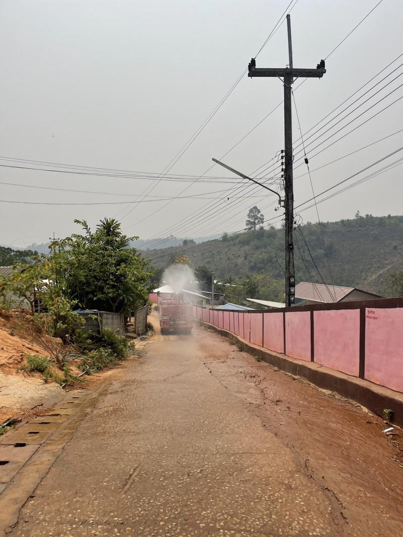 วันที่ 9 เมษายน 2567 ทีมงานป้องกันและบรรเทาสาธารณภัย อบต.แม่สลองใน ดำเนินการพ่นละอองน้ำในอากาศ ปริมาณ 4,500 ลิตร เพื่อเพิ่มความชื้นในอากาศ และลดฝุ่นละอองขนาดเล็ก PM 2.5 ในพื้นที่