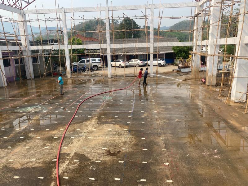 งานป้องกันฯ ออกบริการล้างทำความสะอาดสถานที่ สำหรับเตรียมการจัดงานผ้าป่าสามัคคี เพื่อการศึกษา ในวันที่ 12 เมษายน 2567 ณ โรงเรียน ตชด.พอ.3 และ ลานตลาด ประชารัฐ