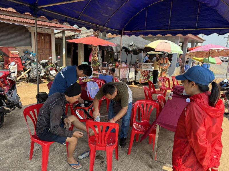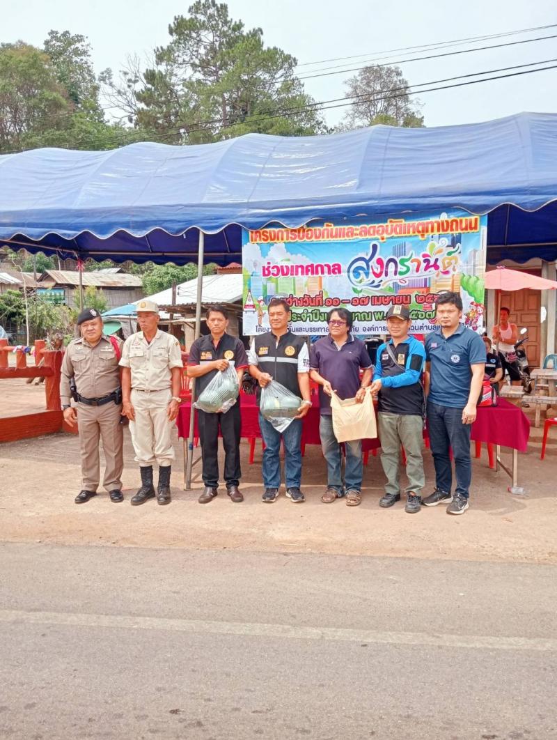 งานป้องกันและงานสาธารณสุข ออกปฏิบัติหน้าที่ ตั้งจุดบริการประชาชนช่วงเทศกาลสงกรานต์ ประจำปีงบประมาณ 2567 ณ บ้านสามแยก (หมู่ที่ 24)