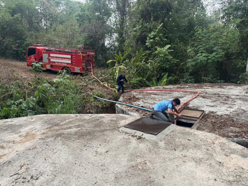 งานป้องกันฯ ออกบริการส่งน้ำเพื่อใช้ในการอุปโภค ตามคำขอความช่วยเหลือฯ ให้กับบ้านเล่าจาง หมู่ที่ 12 จำนวน 3 เที่ยว
