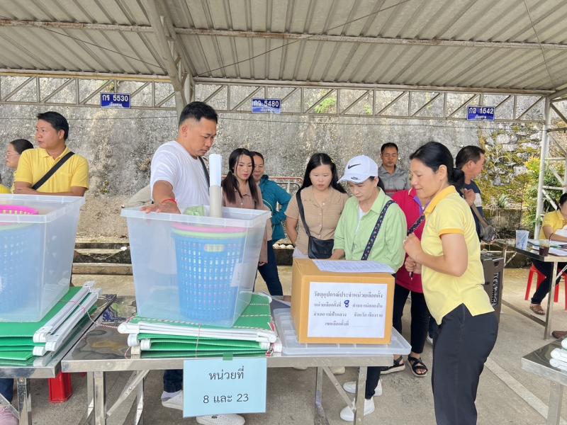 วันที่ 18 พฤาภาคม 2567 ภาพบรรยากาศการรับมอบอุปกรณ์เลือกตั้งนายกองค์การบริหารส่วนตำบลแม่สลองใน เขตเลือกตั้งที่ 1 ณ องค์การบริหารส่วนตำบลแม่สลองใน