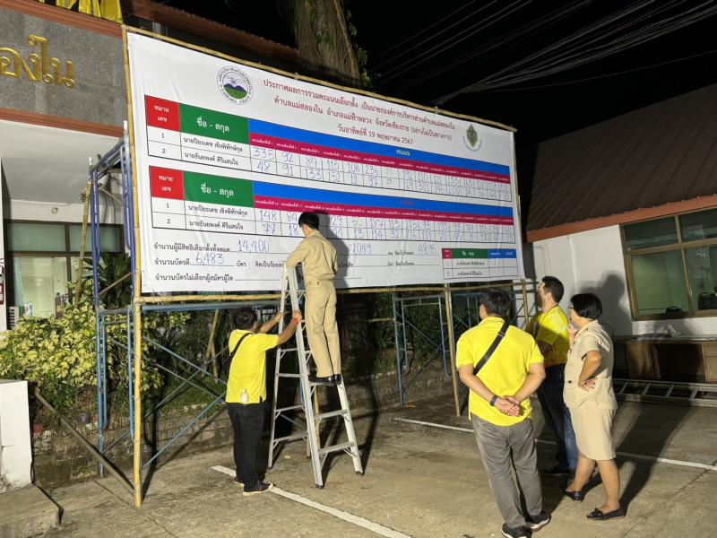 .... ประมวลภาพบรรยากาศ .... คณะกรรมการการเลือกตั้งนายกองค์การบริหารส่วนตำบลแม่สลองใน ได้ดำเนินการรวบรวมผลคะแนน (อย่างไม่เป็นทางการ) ในวันอาทิตย์ ที่ 19 พฤษภาคม 2567 ในการเลือกตั้งนายกองค์การบริหารส่วนตำบลแม่สลองใน เขตเลือกตั้งที่ 1 ตำบลแม่สลองใน อำเภอแม่ฟ้าหลวง จังหวัดเชียงราย