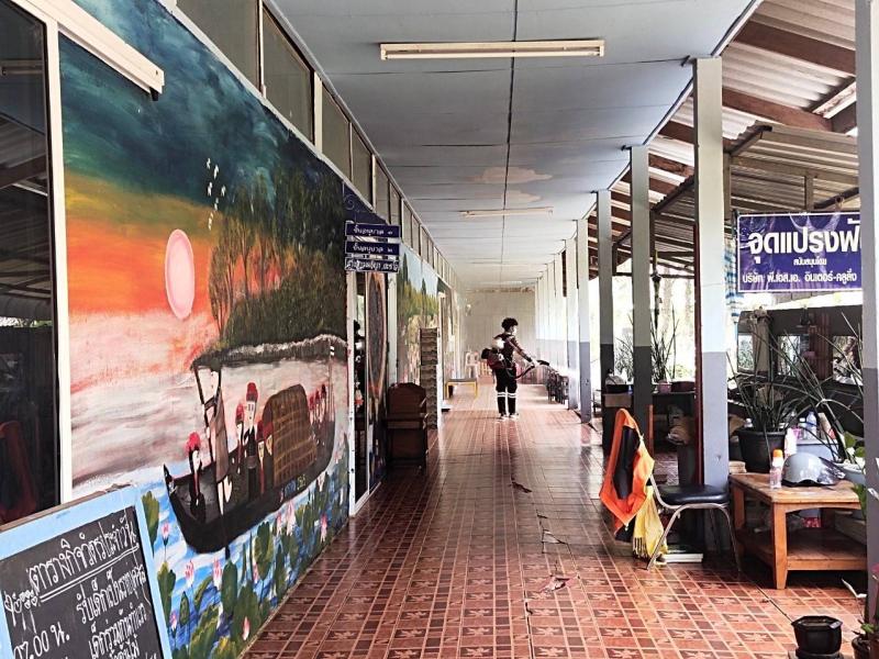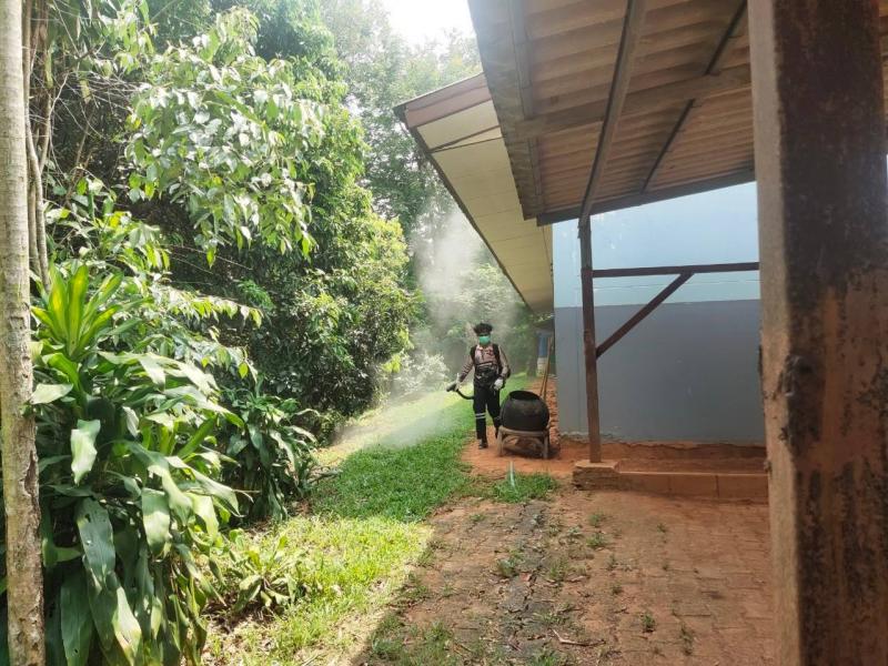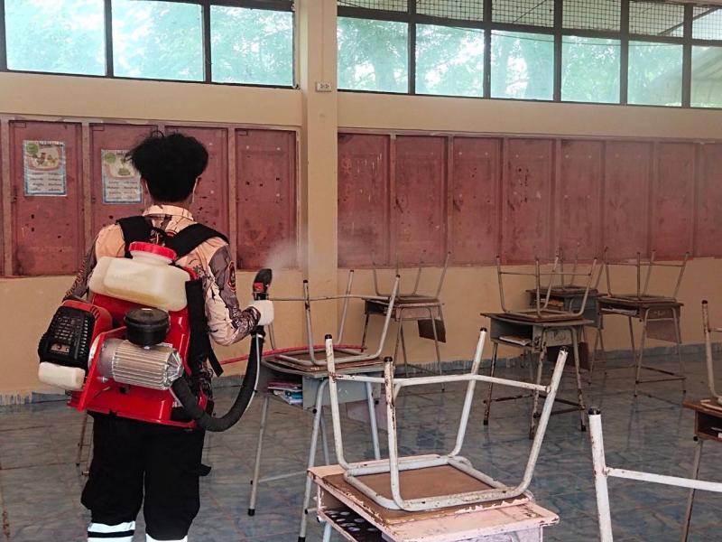 ฝ่ายบริหารงานสาธารณสุข ออกไปพ่นยาเคมีกำจัดยุงลาย ณ โรงเรียนบ้านผาเดื่อ