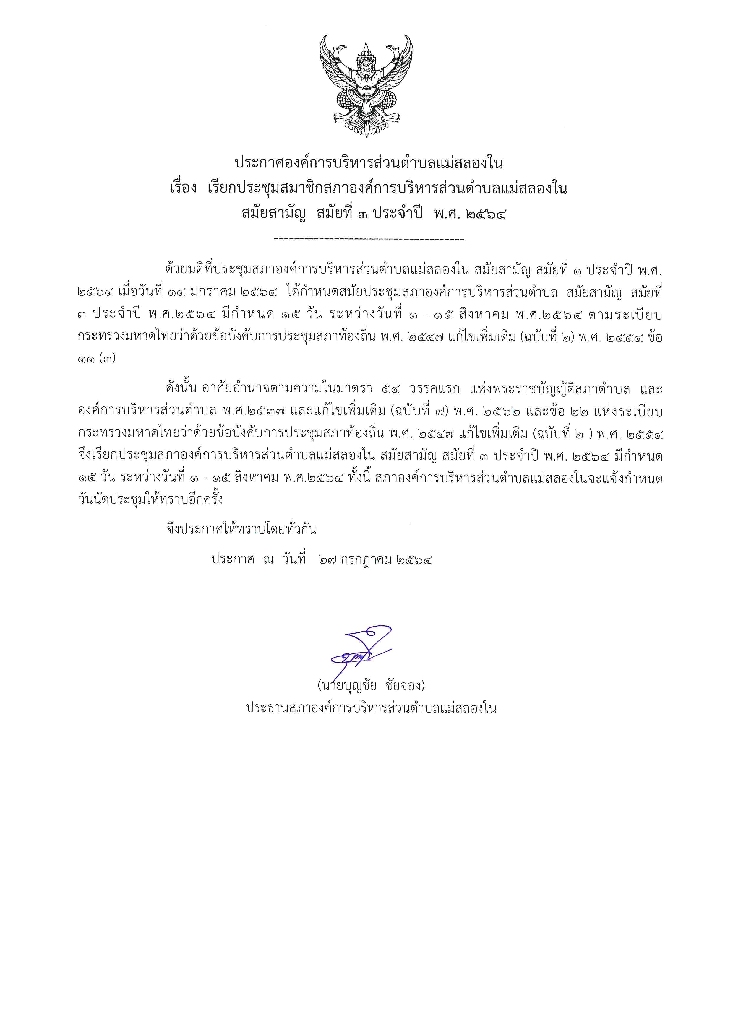 ประกาศเมื่อ 27 กรกฏาคม 2021 เวลา 14:23 เปิดอ่านทั้งหมด 9 ครั้ง