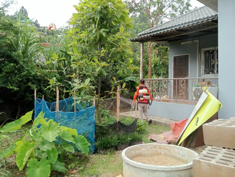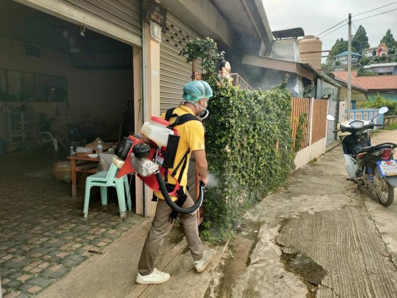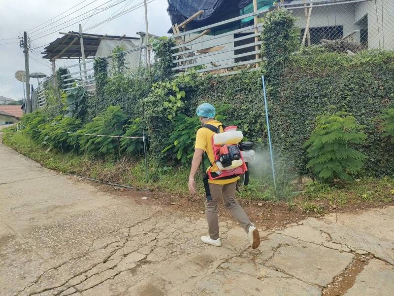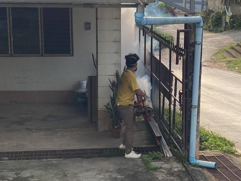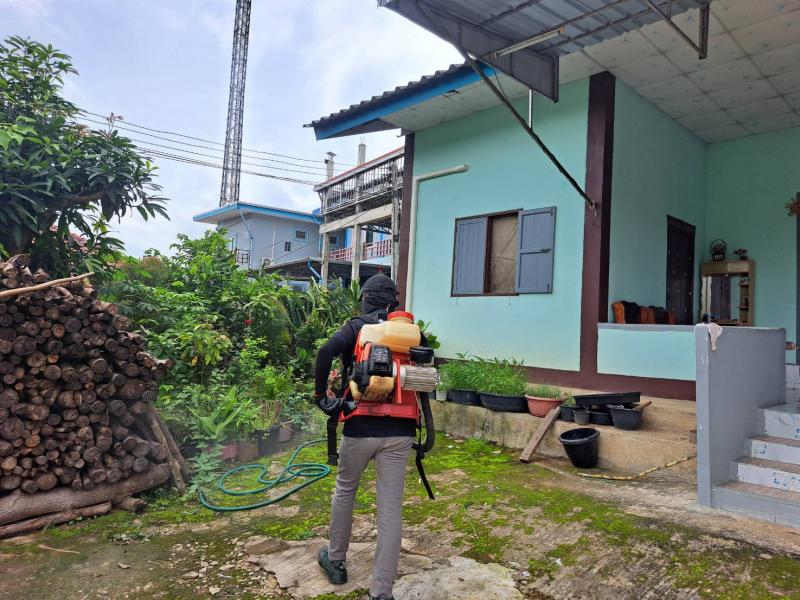 ฝ่ายบริหารงานสาธารณสุข ร่วมกับ ภาคีเครือข่าย ลงพื้นที่บ้านหินแตก หมู่ 1 พ่นยาเคมีกำจัดยุงลาย โดยใช้เครื่องพ่นละอองฝอย ULV และสำรวจลูกน้ำยุงลาย เพื่อควบคุมโรคไข้เลือดออก