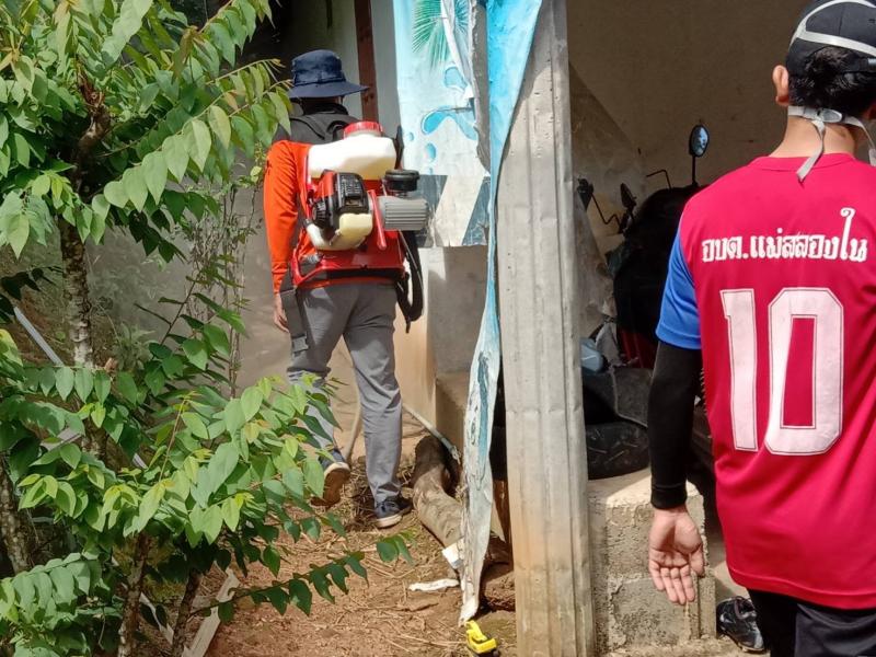 อบต.แม่สลองใน ออกพ่นยาเคมีกำจัดยุงลาย โดยใช้เครื่องพ่นละอองฝอย ULV และสำรวจลูกน้ำยุงลาย เพื่อควบคุมโรคไข้เลือดออก ณ บ้านหินแตก (หมู่ที่ 1) และบ้านพะน้อย (หมู่ที่ 12)