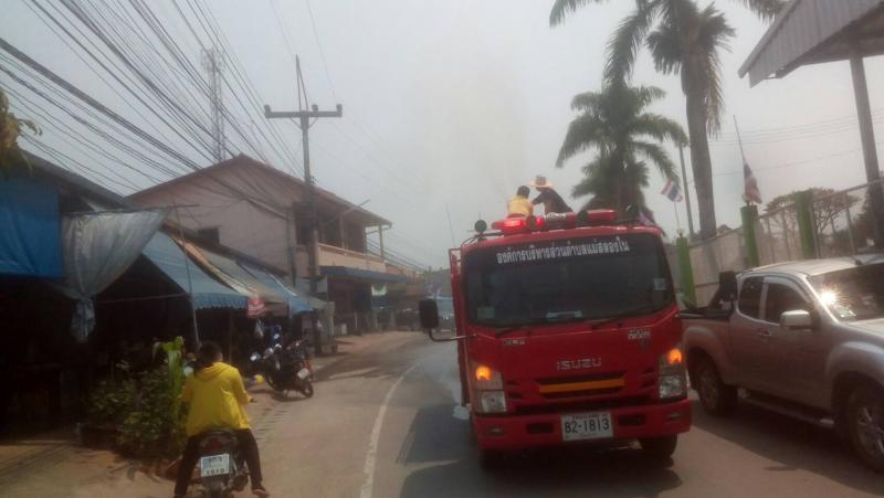วันที่ 17 มีนาคม 2563 งานป้องกันและบรรเทาสาธารณภัย อบต.แม่สลองใน นำรถบรรทุกน้ำไปฉีดพ่นละอองน้ำ เพื่อลดภาวะฝุ่นละออง PM 2.5 และเพิ่มความชุ่มชื้นในอากาศ
