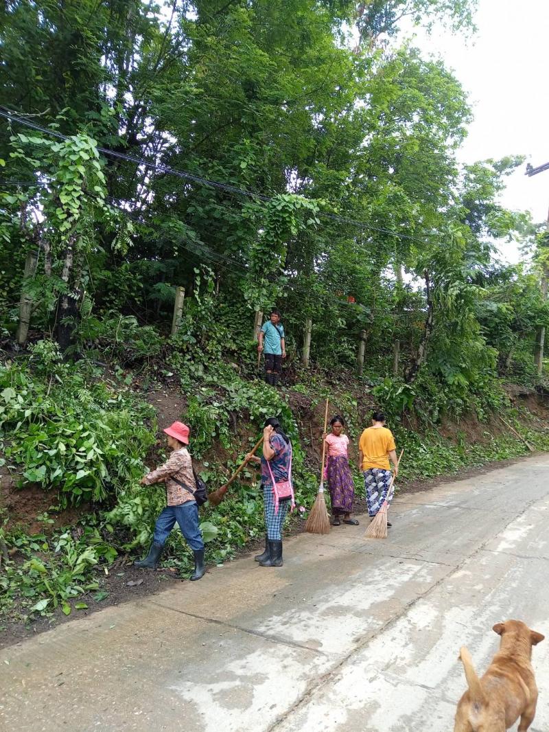อาสาสมัครท้องถิ่นรักษ์โลก ได้นำชาวบ้านช่วยกันทำความสะอาดหมู่บ้าน และทำลายแหล่งขยายพันธุ์ยุงต่างๆ