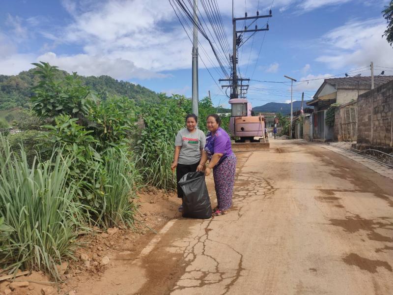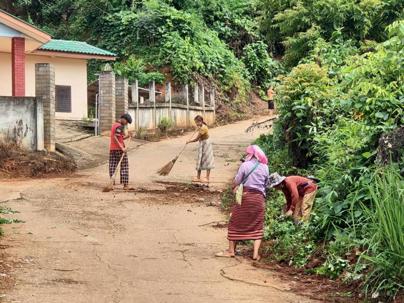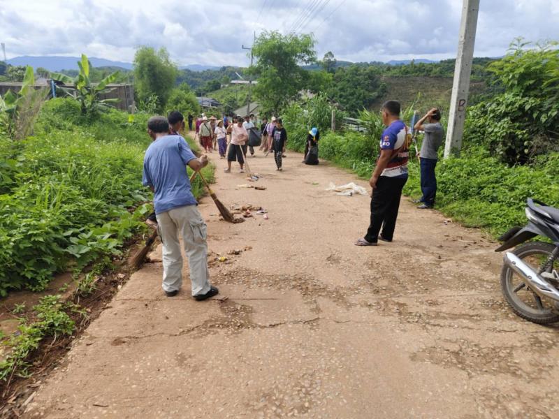 อาสาสมัครท้องถิ่นรักษ์โลก ร่วมกันทำความสะอาดเก็บขยะทำลายแหล่งเพราะพันธ์ลูกน้ำยุงลาย ภายในหมู่บ้าน บ้านหินคำ