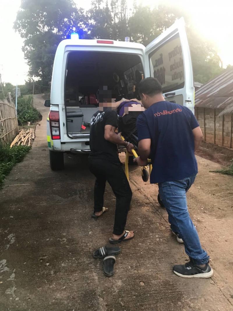 ทีมงานกู้ชีพ ออกช่วยเหลือผู้ป่วยมีอาการหายใจเหนื่อยหอบมีไข้สูง บ้านห้วยกระ
