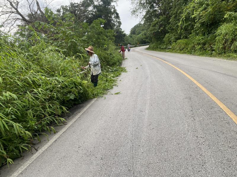 อาสาสมัครท้องถิ่นรักษ์โลก ช่วยกันพัฒนาถางหญ้าสองข้างถนน บ้านสามแยก หมู่ที่ 24