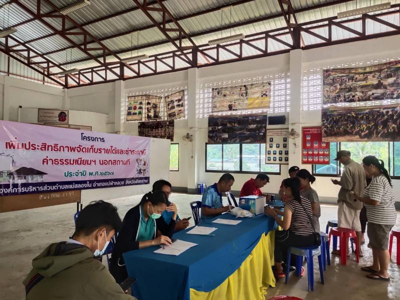 งานจัดเก็บรายได้ ร่วมกับงานสาธารณสุข ออกบริการจัดเก็บค่าขยะมูลฝอย นอกสถานที่ ณ บ้านหินแตก หมู่ที่ 1