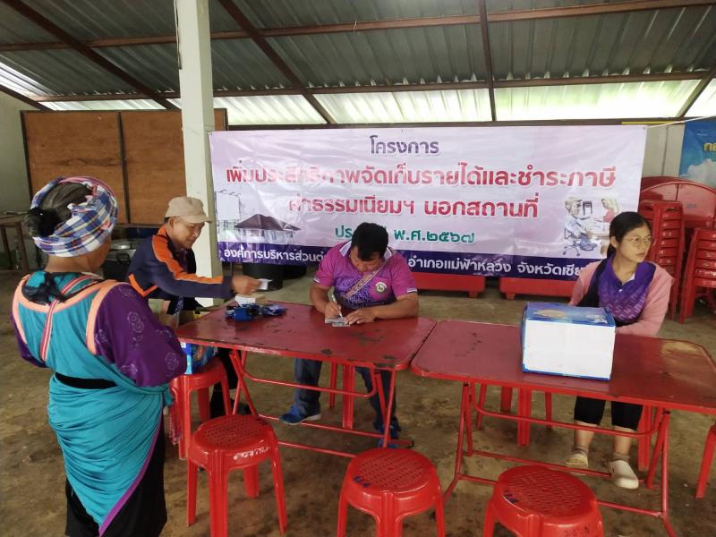 งานจัดเก็บรายได้ ลงพื้นที่ออกบริการเก็บค่าขยะมูลฝอย นอกสถานที่ ณ บ้านหัวแม่คำ หมู่ที่ 4