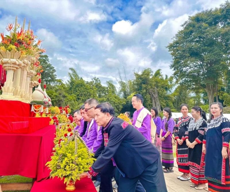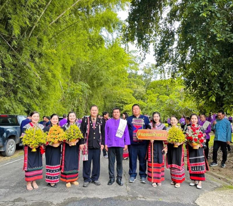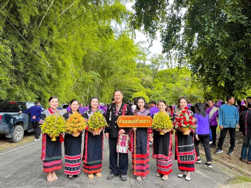 นายอภิชาติ ศรีสุวรรณ์ นายอำเภอแม่ฟ้าหลวง พร้อมด้วยหัวหน้าส่วนราชการฯ, ปลัดอำเภอ, ผู้บริหารองค์กรปกครองส่วนท้องถิ่น,กำนัน ผู้ใหญ่บ้าน และมวลชนชาวอำเภอแม่ฟ้าหลวง ร่วมพิธีทานหาแม่ฟ้าหลวงฯ นำขบวนมวลชนอำเภอแม่ฟ้าหลวง ถวายเครื่องสักการะหน้าพระฉายาลักษณ์สมเด็จพระศรีนครินทราบรมราชชนนี เพื่อแสดงความจงรักภักดีและน้อมรำลึกถึงพระมหากรุณาธิคุณ |