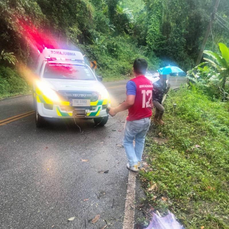 ทีมงานกู้ชีพร่วมกับงานป้องกันฯ ให้ออกช่วยเหลือ รถชาวบ้านตกข้างทาง ที่บริเวณบ้านผาเดื่อ หมู่ที่ 6