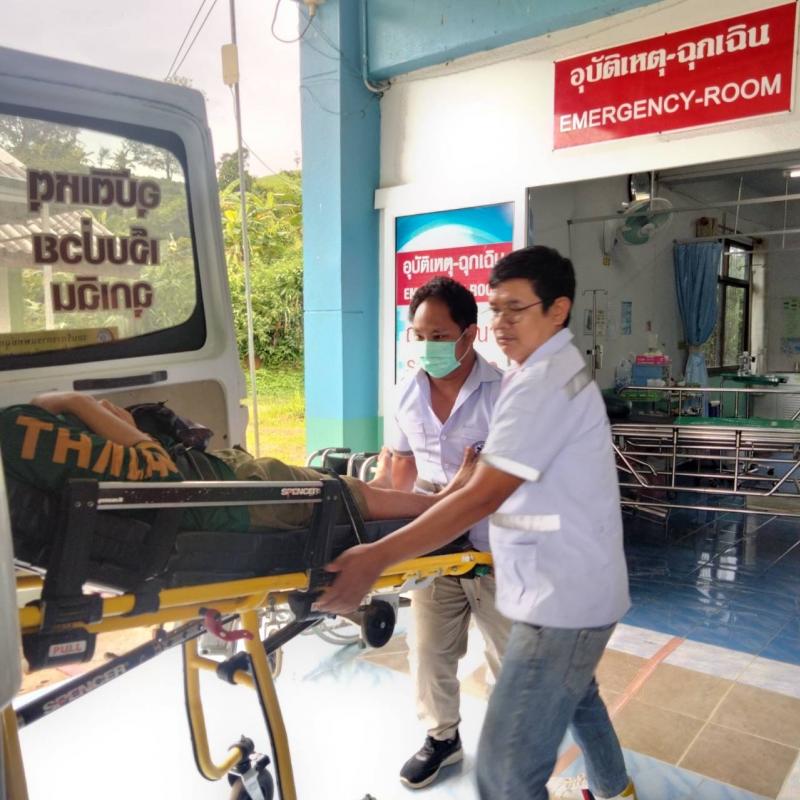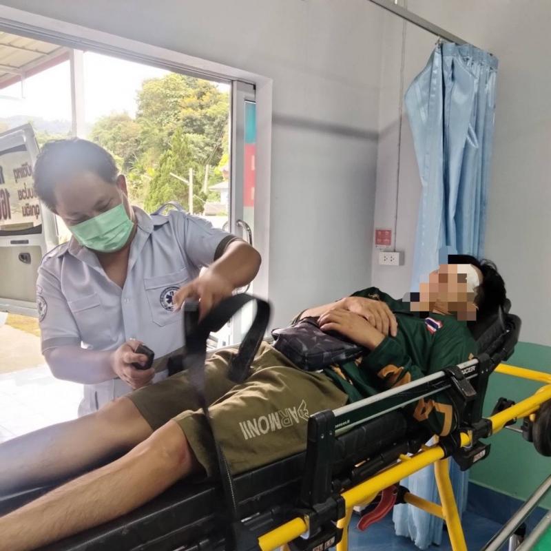 งานกู้ชีพฯ ออกช่วยเหลือผู้ป่วยจากอุบัติเหตุรถมอเตอร์ไซค์ล้ม ที่บริเวณบ้านเล่าลิ่ว (หมู่ที่ 14)