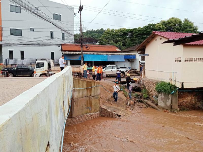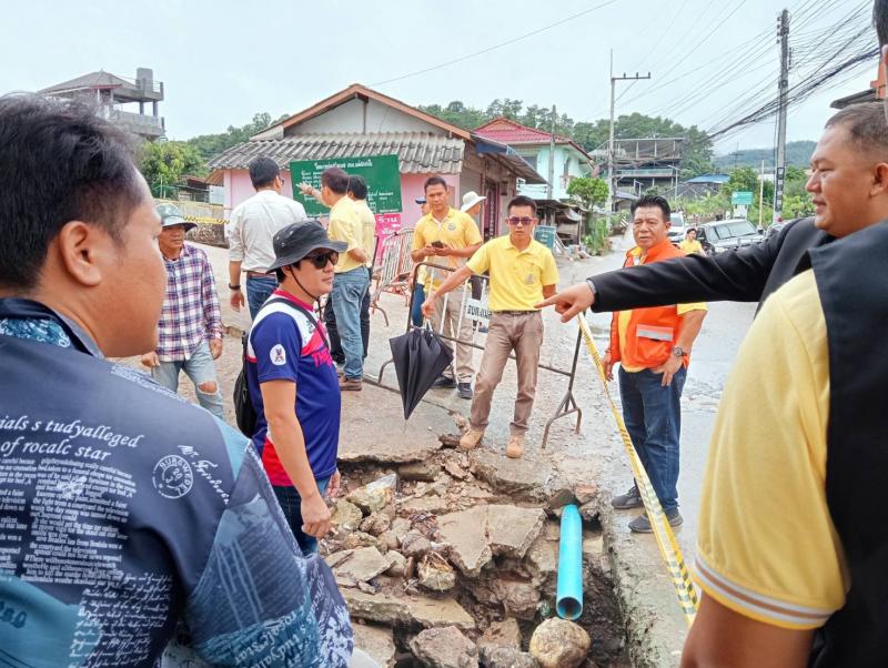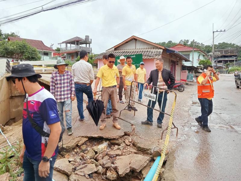 ฝ่ายบริหาร ออกสำรวจความเสียหายของคอสะพานตลาดไทยทอง บ้านเล่าจาง เพื่อหาแนวทางแก้ไขและซ่อมแซมต่อไป