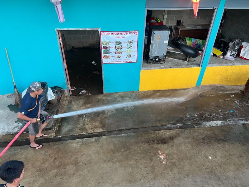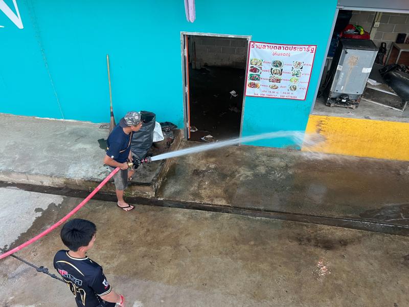 เจ้าหน้าที่ป้องกันฯ ออกบริการล้างทำความสะอาดตลาดประชารัฐ บ้านหินแตก (หมู่ที่ 1 )
