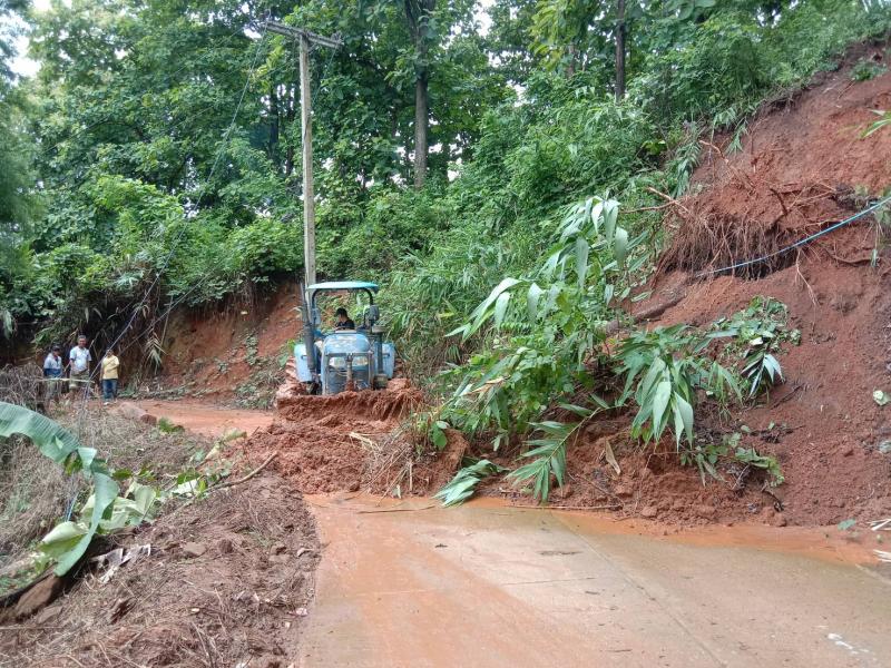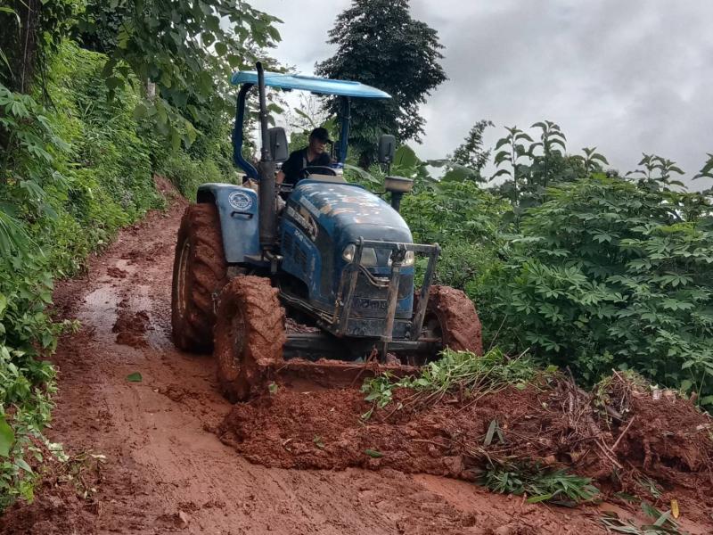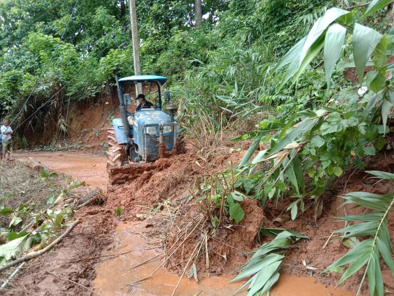 ทีมงานป้องกันฯ นำรถไถลงพื้นที่ปรับดินสไลด์ จำนวน 3 หมู่บ้าน ได้แก่ บ้านมะหินกอง (หมู่ที่ 11),บ้านอาแหละ (หมู่ที่ 15) และบ้านหินคำ (หมู่ที่ 27)