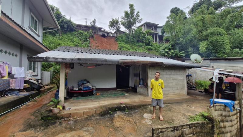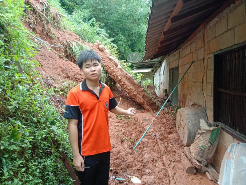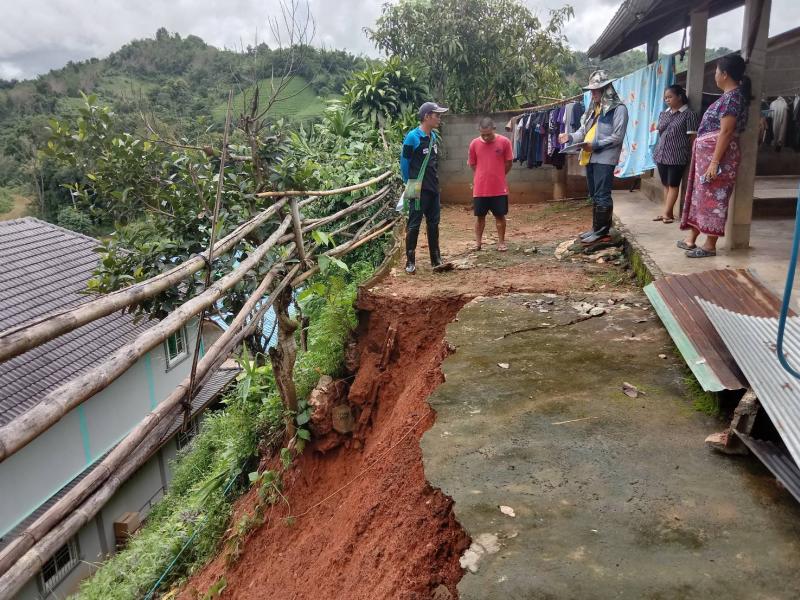 งานป้องกัน และงานกองช่าง ออกสำรวจความเสียหายบ้านผู้ประสบภัย (ดินสไลด์ทับบ้าน) บ้านหินแตก