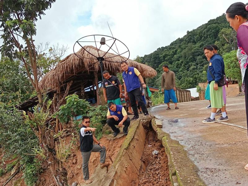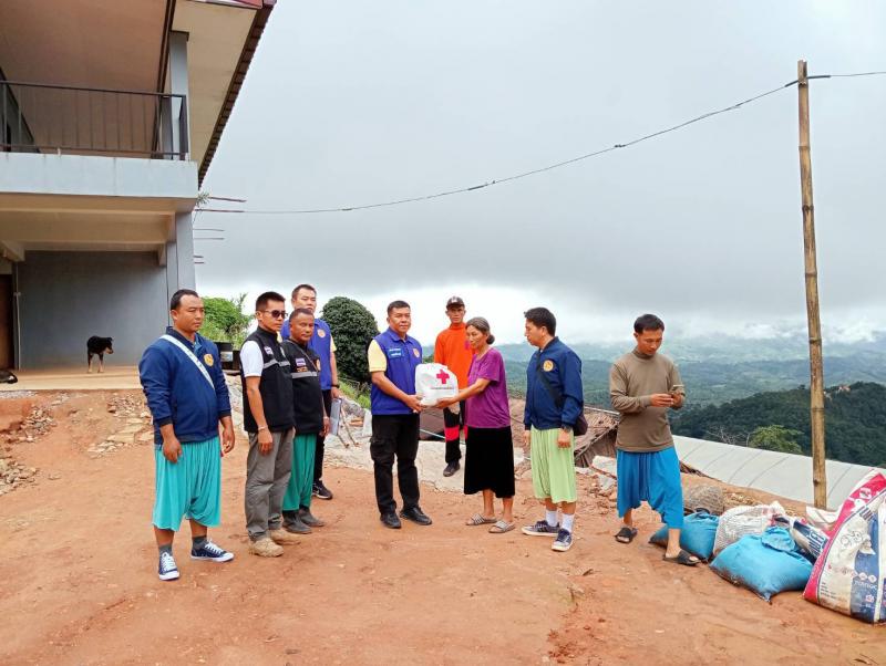 รองนายกสมชาย ดวงติ๊บ ลงพื้นที่มอบวัสดุในการซ่อมแซมที่อยู่อาศัย ร่วมกับท่านนายอำเภอแม่ฟ้าหลวง พร้อมทำการสำรวจรอยแผ่นดินทรุดตัวบ้านหัวแม่คำ หมู่ที่ 4