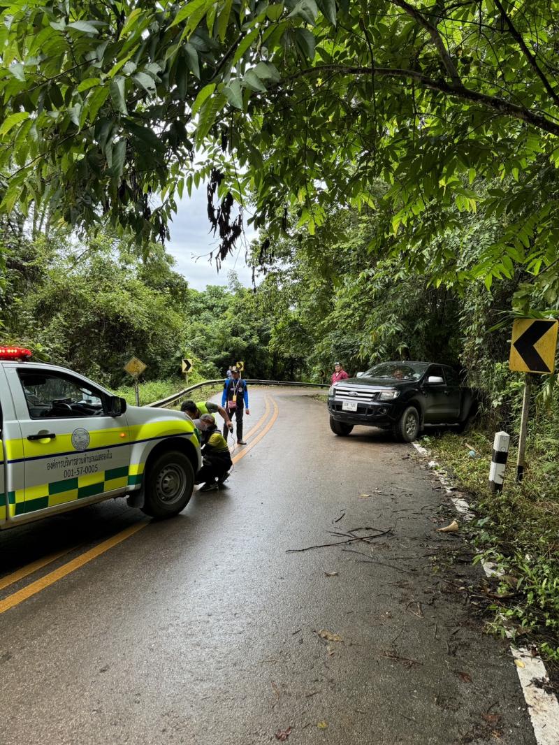 ทีมงานป้องกันฯ ร่วมกับทีมงานกู้ชีพ ออกช่วยเหลืออุบัติเหตุรถตกข้างทาง