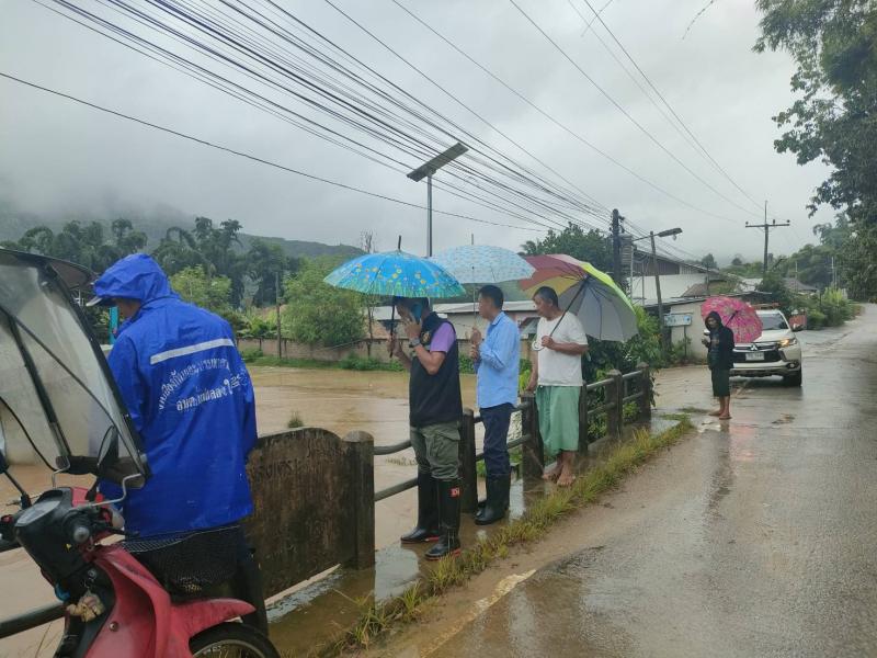 รองนายกสมชาย ดวงติ๊บ พร้อมด้วยเจ้าหน้าที่ป้องกันฯ ลงพื้นที่สำรวจและเฝ้าระวัง ระดับแม่น้ำคำบริเวณ บ้านหินแตก (หมู่ที่ 1)