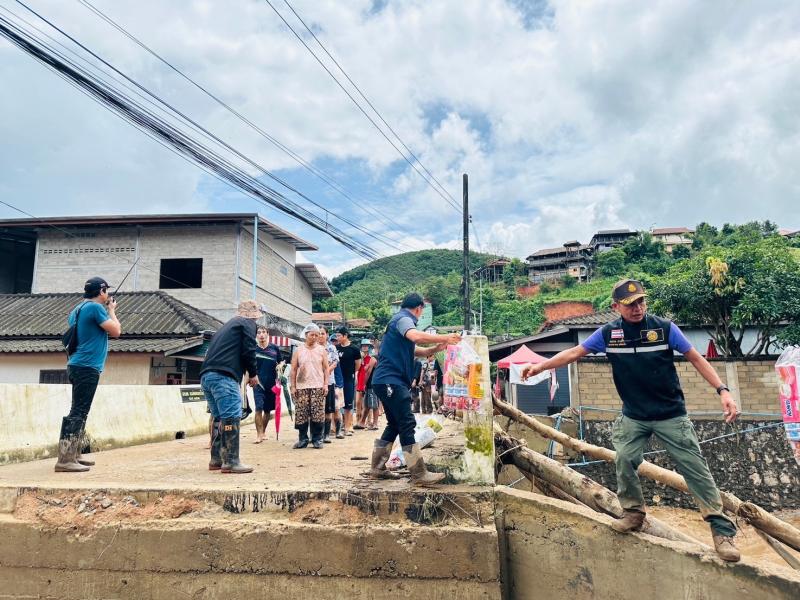 วันที่ 11 กันยายน 2567 นำโดยนายอภิชาติ ศรีสุวรรณ์ นายอำเภอแม่ฟ้าหลวง พร้อมด้วยนายปิยะเดช เชิงพิทักษ์กุล นายก อบต.แม่สลองใน พร้อมด้วยฝ่ายบริหาร และผู้นำชุมชน บ้านหินแตกและบ้านพะน้อย ลงพื้นที่สำรวจความเสียหาย พร้อมมอบถุงยังชีพช่วยเหลือผู้ประสบภัยเบื้องต้น (ในนามองค์การบริหารส่วนตำบลแม่สลองใน ขอเป็นกำลังใจให้กับผู้ประสบภัยน้ำท่วมครั้งนี้)