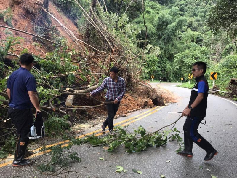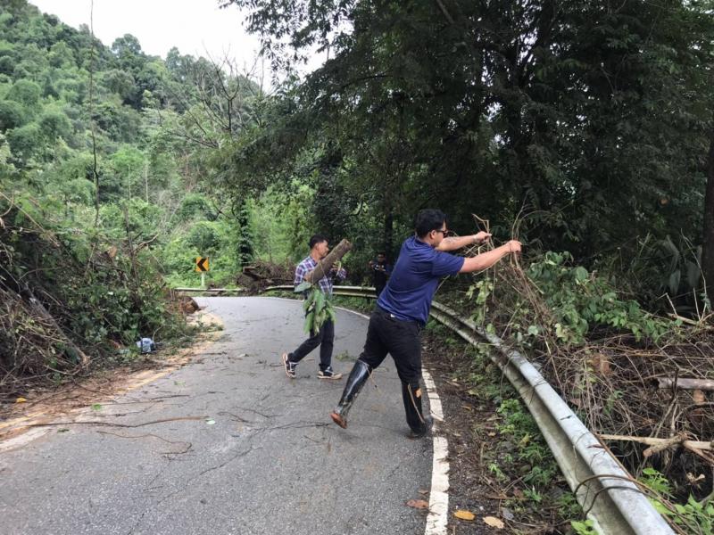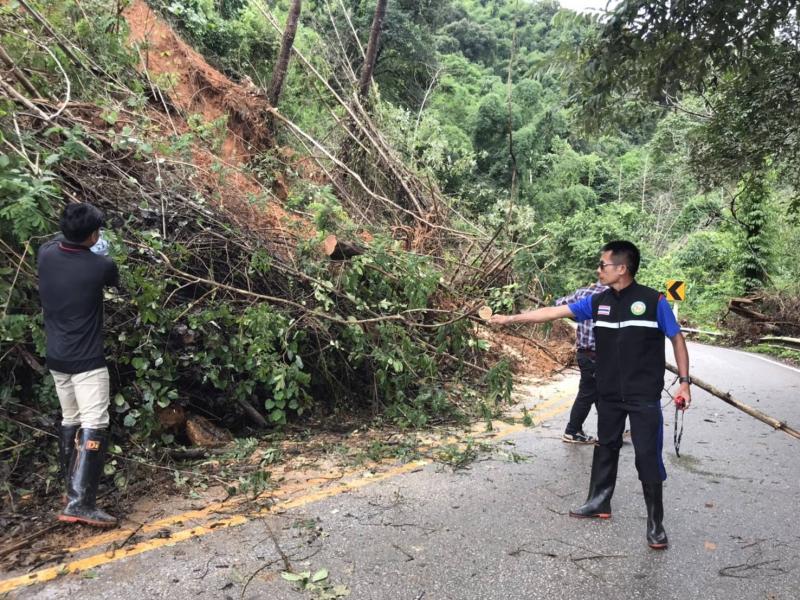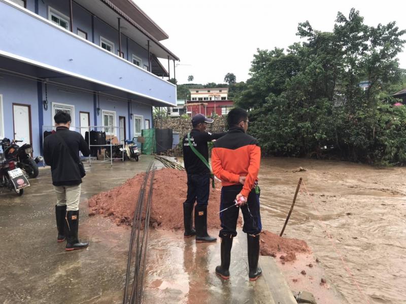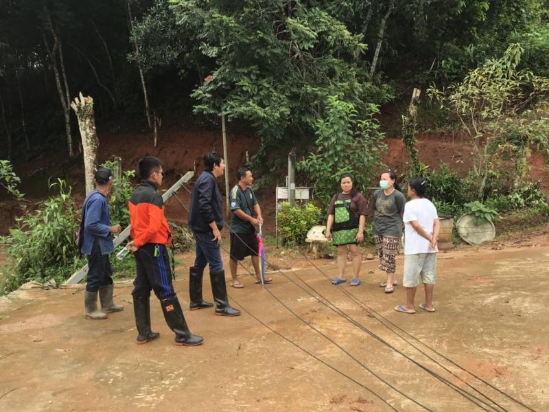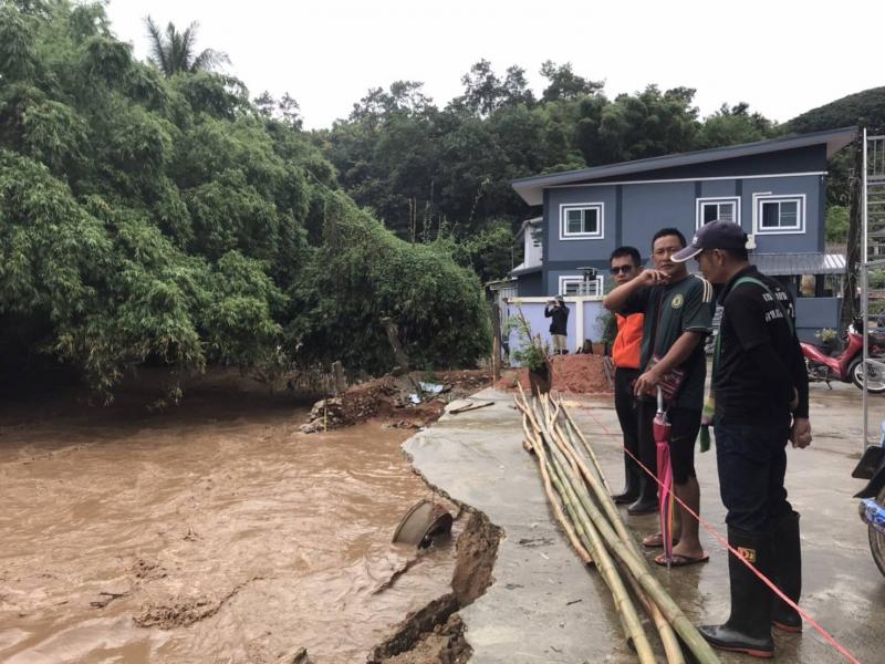 รองนายก สมชาย ดวงติ๊บ พร้อมทีมงานป้องกัน ลงพื้นที่ สำรวจความเสียหายดินสไลด์ลงแม่น้ำคำและตลาดไทยทอง (ม.12)