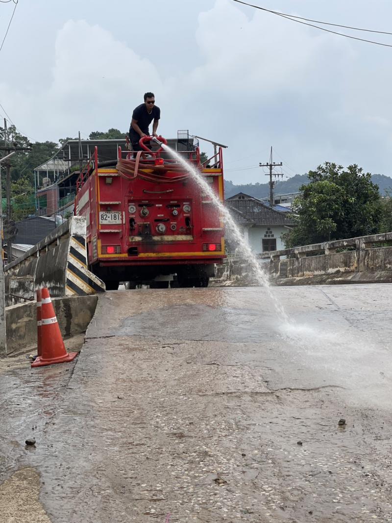 งานป้องกันฯ ออกบริการล้างทำความสะอาดเศษดินทราย
