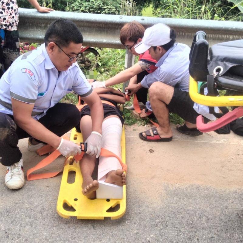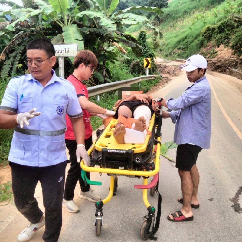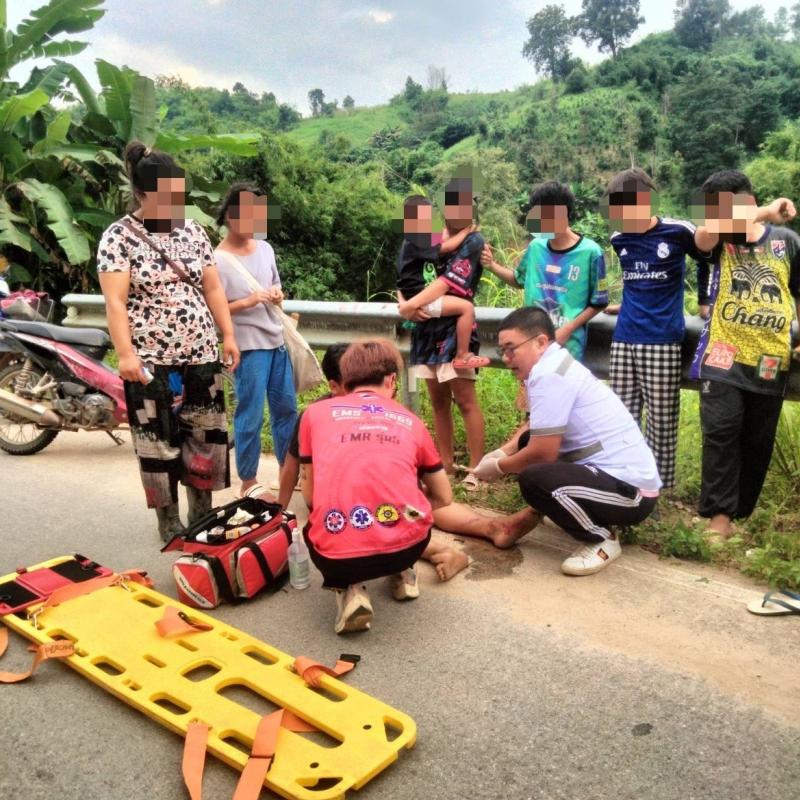 ทีมงานกู้ชีพ (EMS) ออกช่วยเหลืออุบัติเหตุรถจักรยานต์ล้มเอง ที่บ้านนาโต่ หมู่ที่ 20