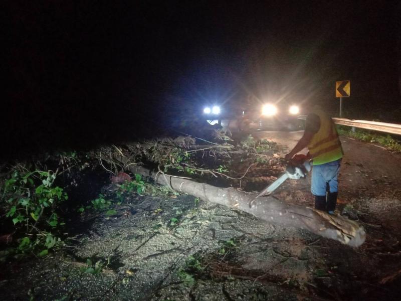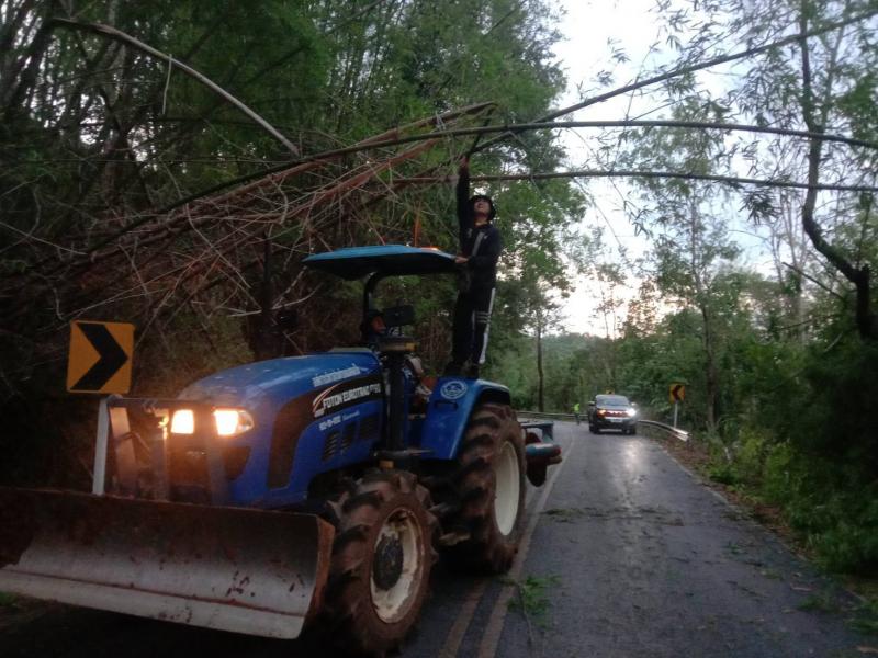 พายุฝนพัดถล่ม ต้นไม้ใหญ่โค่นล้มขวางถนนเส้นทางขึ้นแม่สลองใน อ.แม่ฟ้าหลวง จ.เชียงราย