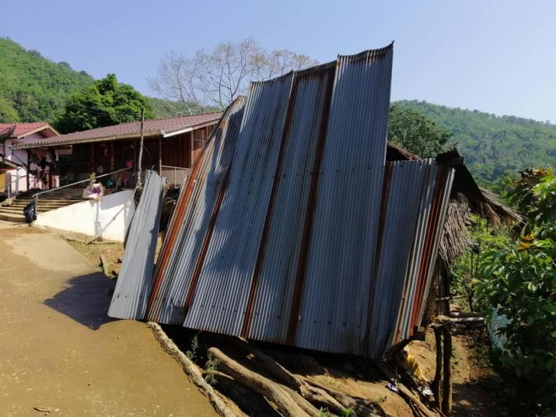 ให้ความช่วยเหลือเบื้องต้น พร้อมกับได้มอบสังกะสีเพื่อเร่งมุงหลังคาให้กับทุกครอบครัวที่ได้รับความเสียหาย