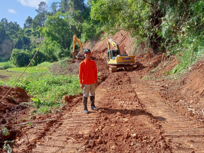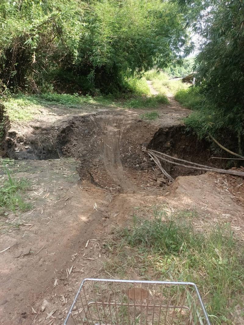 งานป้องกันฯ ลงพื้นที่สำรวจถนนถูกตัดขาดและการปรับถนนที่ได้รับความเสียหายจากเหตุอุทกภัย ณ บ้านเล่าลิ่ว หมู่ที่ 14