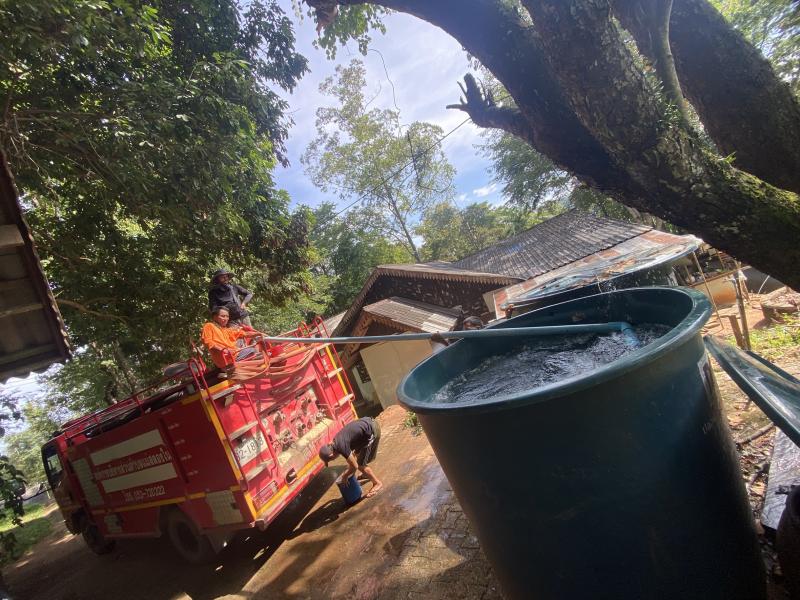 งานป้องกันฯ อกบริการส่งน้ำเพื่อใช้อุปโภค บริเวณ ค่ายบำบัดยาเสพ (กอ.) ตามเอกสารขอความช่วยเหลือฯ ที่บ้านห้วยผึ้ง (ม.2)