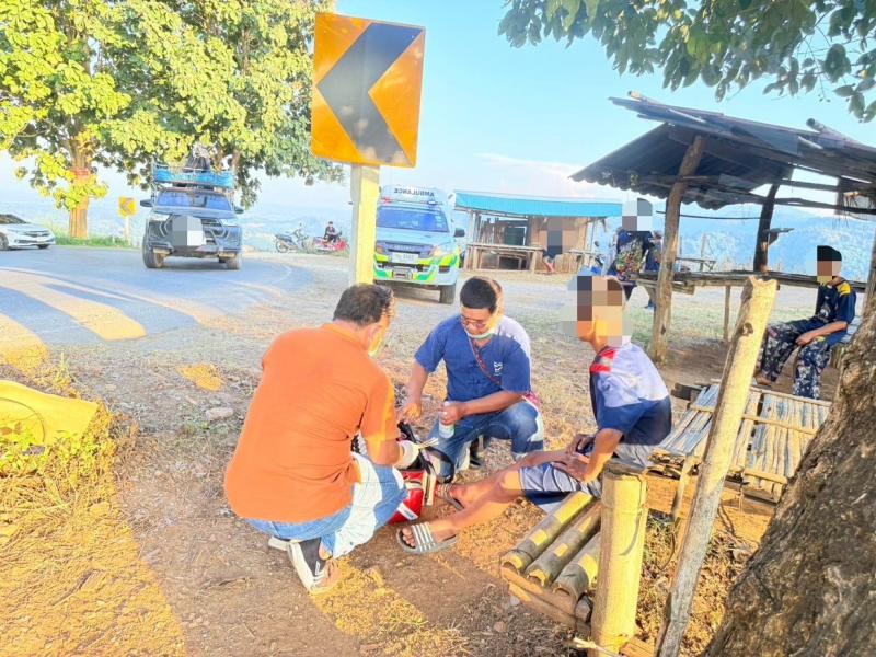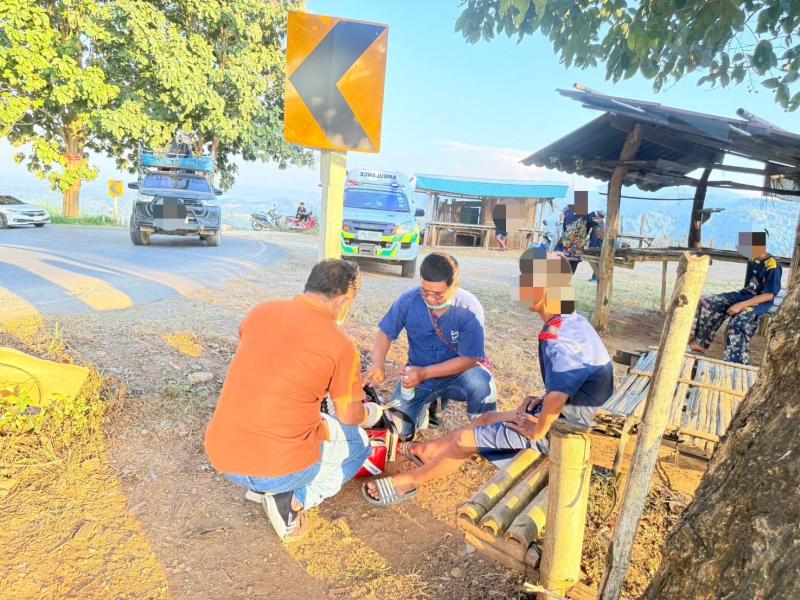 งานกู้ชีพ (EMS) ออกช่วยเหลืออุบัติเหตุรถมอเตอร์ไซค์ล้มบริเวณบ้านผาเดื่อ