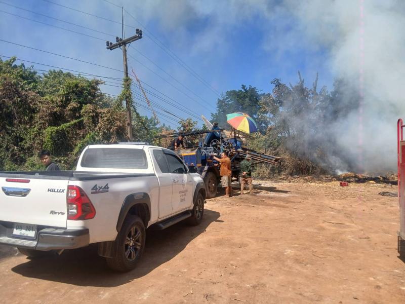 ทีมงานป้องกันฯ ออกปฎิบัติหน้าที่ดับไฟลานโม่ข้าวโพด บ้านต้นม่วง หมู่ที่ 13