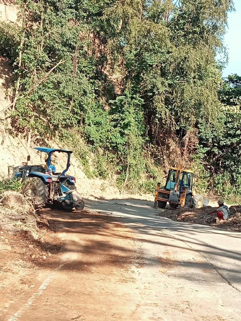 งานป้องกันฯ ได้รับมอบหมายหน้าที่จากรองนายกสมชาย ดวงติ๊บ ให้นำรถไถและรถเจซีบี ลงพื้นที่ปรับถนนบริเวณบ้านหัวแม่คำ หมู่ที่ 4