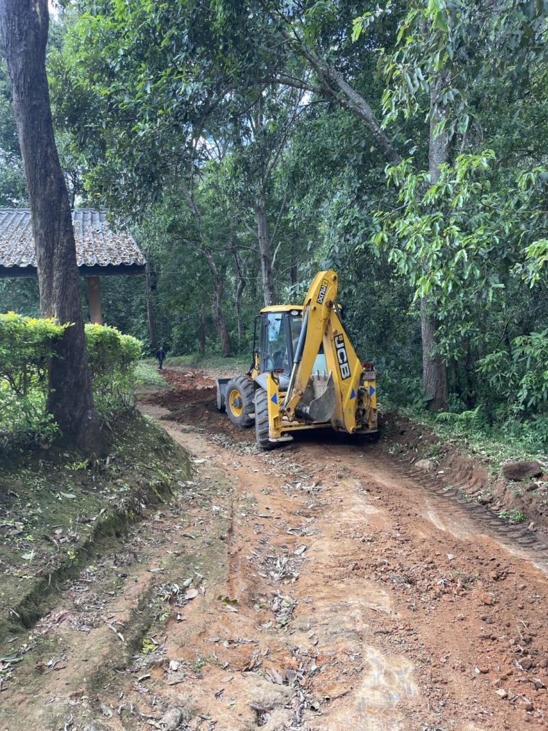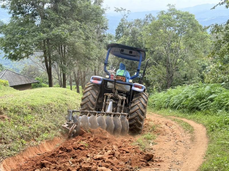ทีมงานป้องกันฯ ด้รับมอบหมายหน้าที่จากรองนายกสมชาย ดวงติ๊บ ให้นำรถไถ และรถ JCB ลงพื้นที่ปรับถนน เกลี่ยดิน ทางไปวนอุทยานดอยหัวแม่คำ